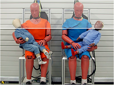 The Child Restraint Air Bag Interaction dummy is used to evaluate air bag exposure to infants restrained in child safety seats that are placed in the front seat.